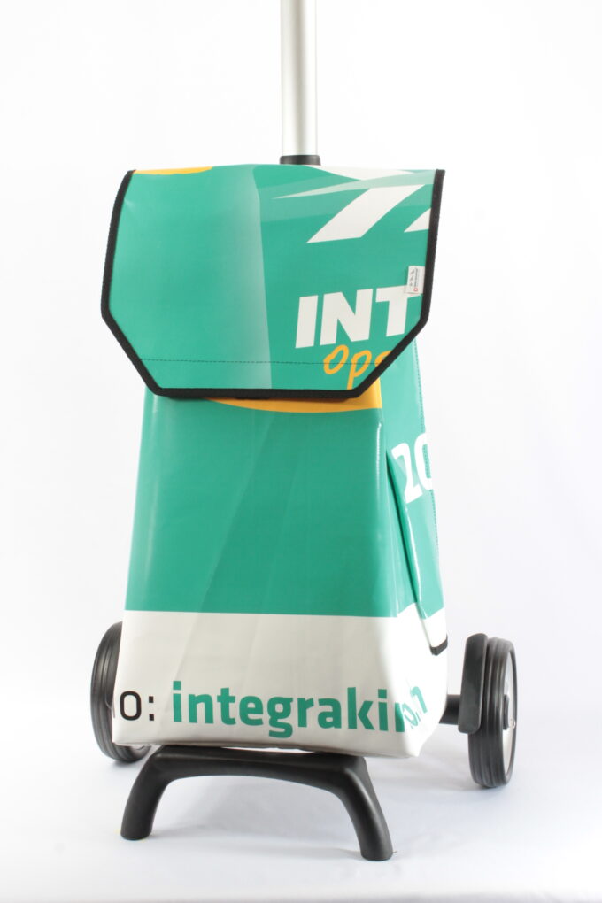 Durch aufreissen von 2 Klettbandverschlüssen kann man den Shopper-Bag vom Wägelchen abnehmen und diesen Shopper-Bag als Rucksack verwenden, da an der Rückseite des Shopper-Bags zwei 4 cm Breite und in der Länge verstellbare Tragegurten angebracht sind.