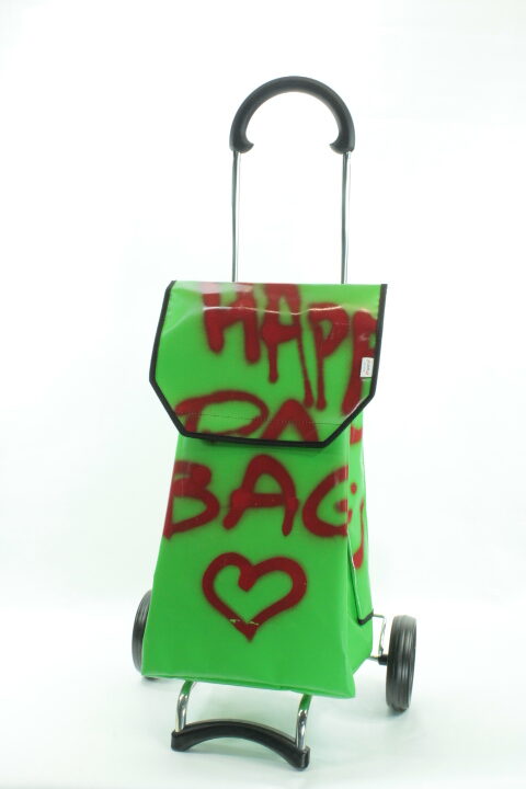 Der Swiss Mountain Standard der Graffiti Edition ist Unikat, jeder ist einzigartig und den gibt es so nur einmal. Jeder Wagen ist ein Unikat. Das Material ist mit einem Graffiti versehen und  wurde einzeln von uns co2 neutral in Engi, Glarus von Hand zusammen genäht. Diese Einkaufswagen sind jeder einzelne ein Eyecatcher !