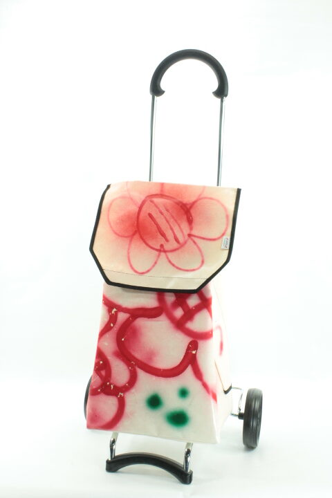 Durch aufreissen von 2 Klettbandverschlüssen kann man den Shopper-Bag vom Wägelchen abnehmen und diesen Shopper-Bag als Rucksack verwenden, da an der Rückseite des Shopper-Bags zwei 4 cm Breite und in der Länge verstellbare Tragegurten angebracht sind.