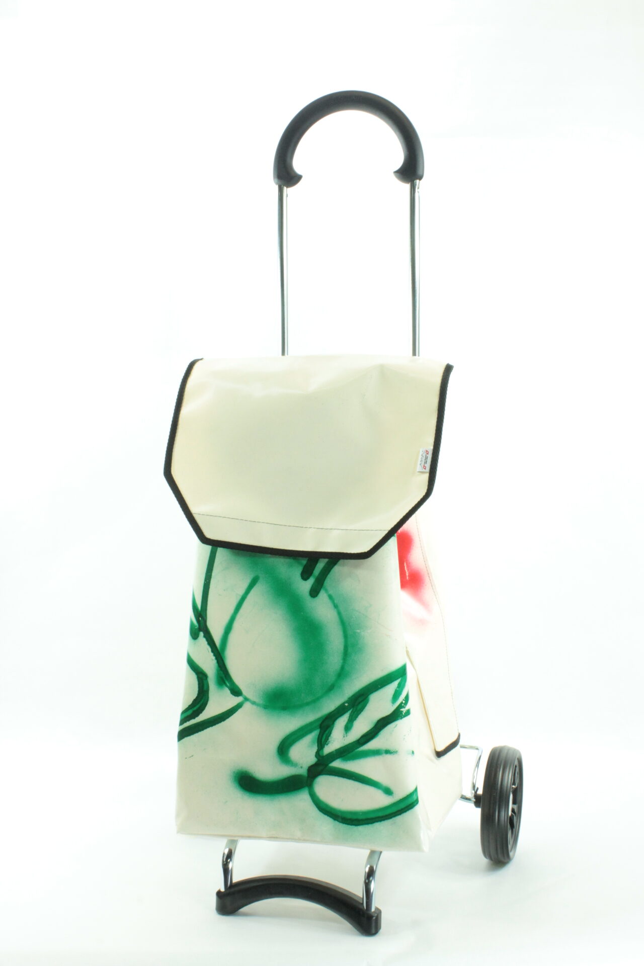 Der Swiss Mountain Standard der Graffiti Edition ist Unikat, jeder ist einzigartig und den gibt es so nur einmal. Jeder Wagen ist ein Unikat. Das Material ist mit einem Graffiti versehen und  wurde einzeln von uns co2 neutral in Engi, Glarus von Hand zusammen genäht. Diese Einkaufswagen sind jeder einzelne ein Eyecatcher !