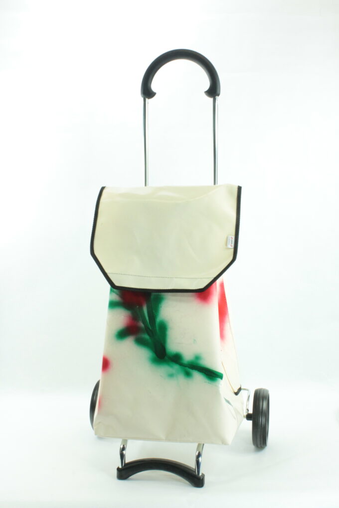 Durch aufreissen von 2 Klettbandverschlüssen kann man den Shopper-Bag vom Wägelchen abnehmen und diesen Shopper-Bag als Rucksack verwenden, da an der Rückseite des Shopper-Bags zwei 4 cm Breite und in der Länge verstellbare Tragegurten angebracht sind.