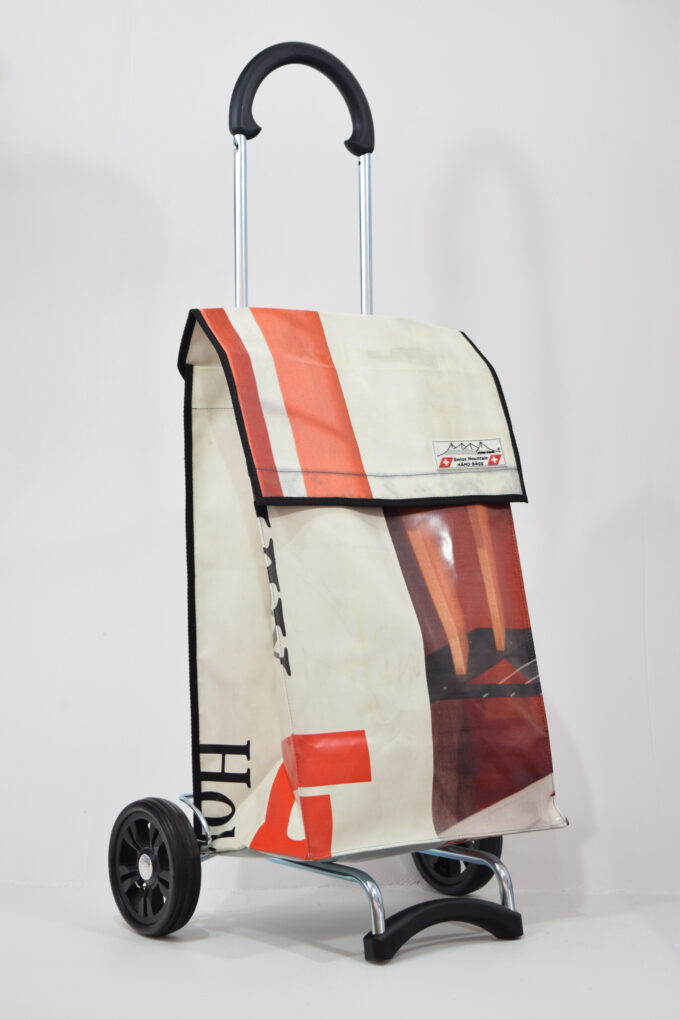 Der Swiss Mountain Einkaufswagen Quadro ist zusammenklappbar. Das Wägelchen-Gestell ist auch ein Markenprodukt der Swiss Mountain . Die 2 Räder haben einen Durchmesser von ca. 18 cm und haben einen konfortablen Rollenlauf.Der Shopperwagengriff ist in 3 Stufen verstellbar in Teleskop-Version. Die getestete Tragfähigkeit ist 40 Kg. An der einen Seite des Einkaufs-Bags befindet sich ein Regenschirmhalter, in den jeder Damen oder Herrenschirm passt. Dieser ist unten offen, so, dass jegliches Regenwasser unten bequem auslaufen kann. Im Innern des Shopper-Bags befindet sich ausserdem noch ein Innenfach ( ca. 17 cm x 21 cm ), das durch einen Reissverschluss zu öffnen oder zu schliessen ist.