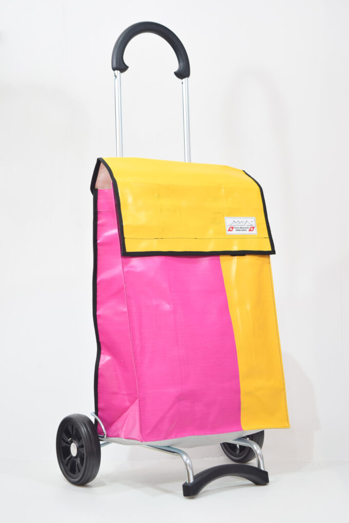 Der Swiss Mountain Einkaufswagen Quadro ist zusammenklappbar. Das Wägelchen-Gestell ist auch ein Markenprodukt der Swiss Mountain . Die 2 Räder haben einen Durchmesser von ca. 18 cm und haben einen konfortablen Rollenlauf.Der Shopperwagengriff ist in 3 Stufen verstellbar in Teleskop-Version. Die getestete Tragfähigkeit ist 40 Kg. An der einen Seite des Einkaufs-Bags befindet sich ein Regenschirmhalter, in den jeder Damen oder Herrenschirm passt. Dieser ist unten offen, so, dass jegliches Regenwasser unten bequem auslaufen kann. Im Innern des Shopper-Bags befindet sich ausserdem noch ein Innenfach ( ca. 17 cm x 21 cm ), das durch einen Reissverschluss zu öffnen oder zu schliessen ist.
