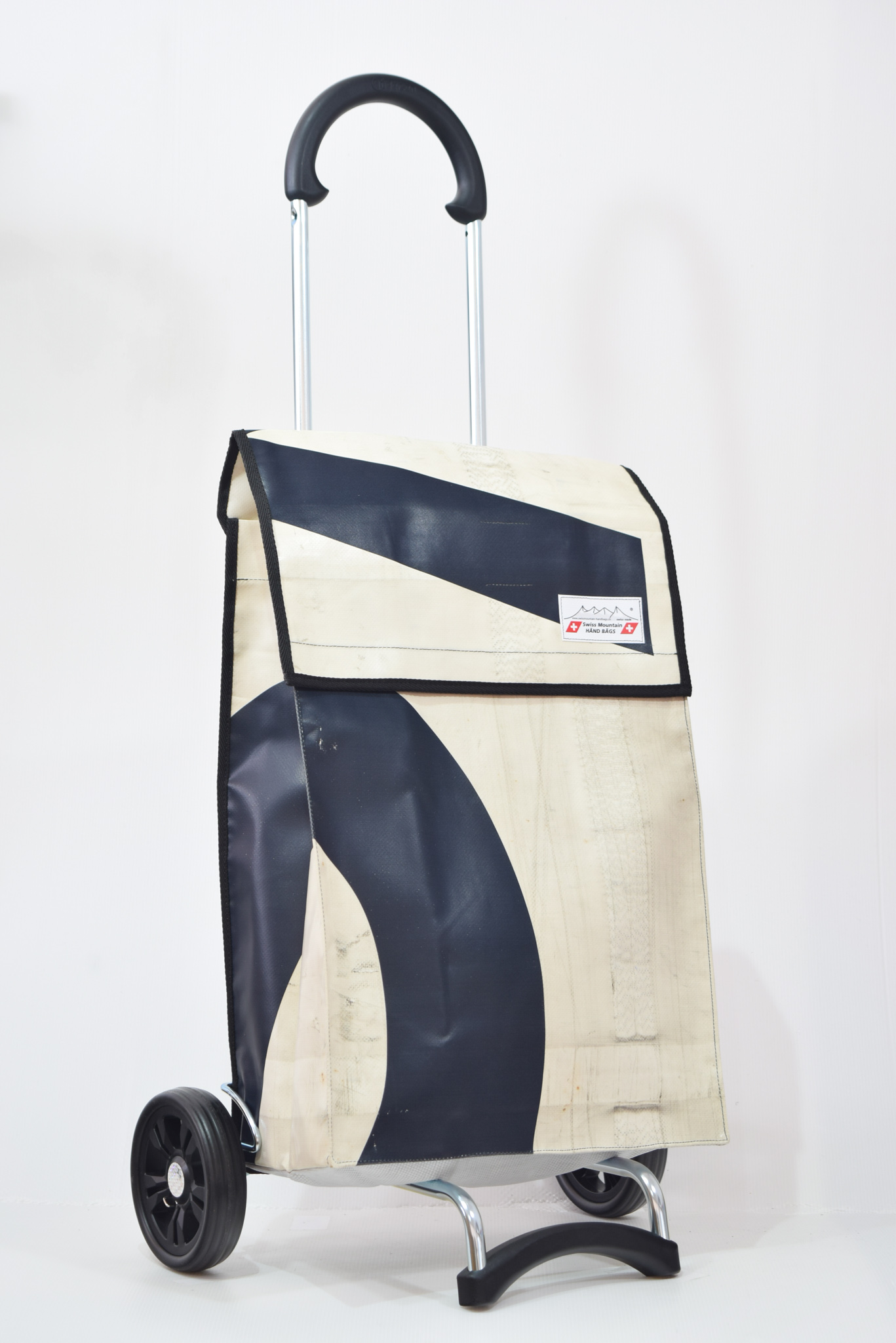Der Swiss Mountain Einkaufswagen Quadro ist zusammenklappbar. Das Wägelchen-Gestell ist auch ein Markenprodukt der Swiss Mountain . Die 2 Räder haben einen Durchmesser von ca. 18 cm und haben einen konfortablen Rollenlauf.Der Shopperwagengriff ist in 3 Stufen verstellbar in Teleskop-Version. Die getestete Tragfähigkeit ist 40 Kg. An der einen Seite des Einkaufs-Bags befindet sich ein Regenschirmhalter, in den jeder Damen oder Herrenschirm passt. Dieser ist unten offen, so, dass jegliches Regenwasser unten bequem auslaufen kann. Im Innern des Shopper-Bags befindet sich ausserdem noch ein Innenfach ( ca. 17 cm x 21 cm ), das durch einen Reissverschluss zu öffnen oder zu schliessen ist.