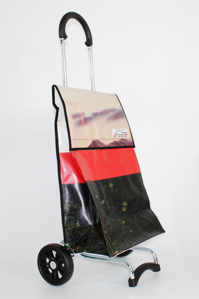 Der Swiss Mountain Einkaufswagen Quadro ist zusammenklappbar. Das Wägelchen-Gestell ist auch ein Markenprodukt der Swiss Mountain . Die 2 Räder haben einen Durchmesser von ca. 18 cm und haben einen konfortablen Rollenlauf.Der Shopperwagengriff ist in 3 Stufen verstellbar in Teleskop-Version. Die getestete Tragfähigkeit ist 40 Kg. An der einen Seite des Einkaufs-Bags befindet sich ein Regenschirmhalter, in den jeder Damen oder Herrenschirm passt. Dieser ist unten offen, so, dass jegliches Regenwasser unten bequem auslaufen kann. Im Innern des Shopper-Bags befindet sich ausserdem noch ein Innenfach ( ca. 17 cm x 21 cm ), das durch einen Reissverschluss zu öffnen oder zu schliessen ist.