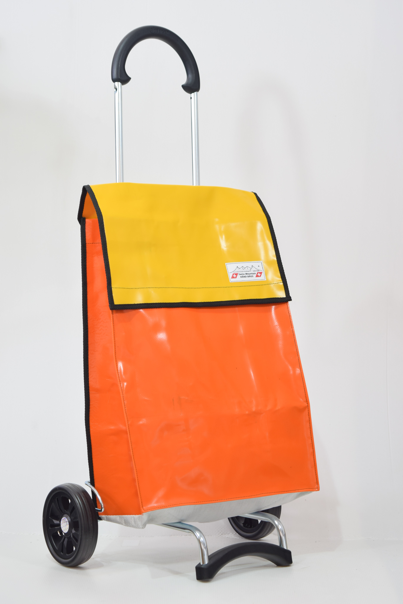 Der Swiss Mountain Einkaufswagen Quadro ist zusammenklappbar. Das Wägelchen-Gestell ist auch ein Markenprodukt der Swiss Mountain . Die 2 Räder haben einen Durchmesser von ca. 18 cm und haben einen konfortablen Rollenlauf.Der Shopperwagengriff ist in 3 Stufen verstellbar in Teleskop-Version. Die getestete Tragfähigkeit ist 40 Kg. An der einen Seite des Einkaufs-Bags befindet sich ein Regenschirmhalter, in den jeder Damen oder Herrenschirm passt. Dieser ist unten offen, so, dass jegliches Regenwasser unten bequem auslaufen kann. Im Innern des Shopper-Bags befindet sich ausserdem noch ein Innenfach ( ca. 17 cm x 21 cm ), das durch einen Reissverschluss zu öffnen oder zu schliessen ist.