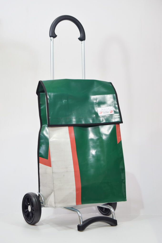 Der Swiss Mountain Einkaufswagen Quadro ist zusammenklappbar. Das Wägelchen-Gestell ist auch ein Markenprodukt der Swiss Mountain . Die 2 Räder haben einen Durchmesser von ca. 18 cm und haben einen konfortablen Rollenlauf.Der Shopperwagengriff ist in 3 Stufen verstellbar in Teleskop-Version. Die getestete Tragfähigkeit ist 40 Kg. An der einen Seite des Einkaufs-Bags befindet sich ein Regenschirmhalter, in den jeder Damen oder Herrenschirm passt. Dieser ist unten offen, so, dass jegliches Regenwasser unten bequem auslaufen kann. Im Innern des Shopper-Bags befindet sich ausserdem noch ein Innenfach ( ca. 17 cm x 21 cm ), das durch einen Reissverschluss zu öffnen oder zu schliessen ist.