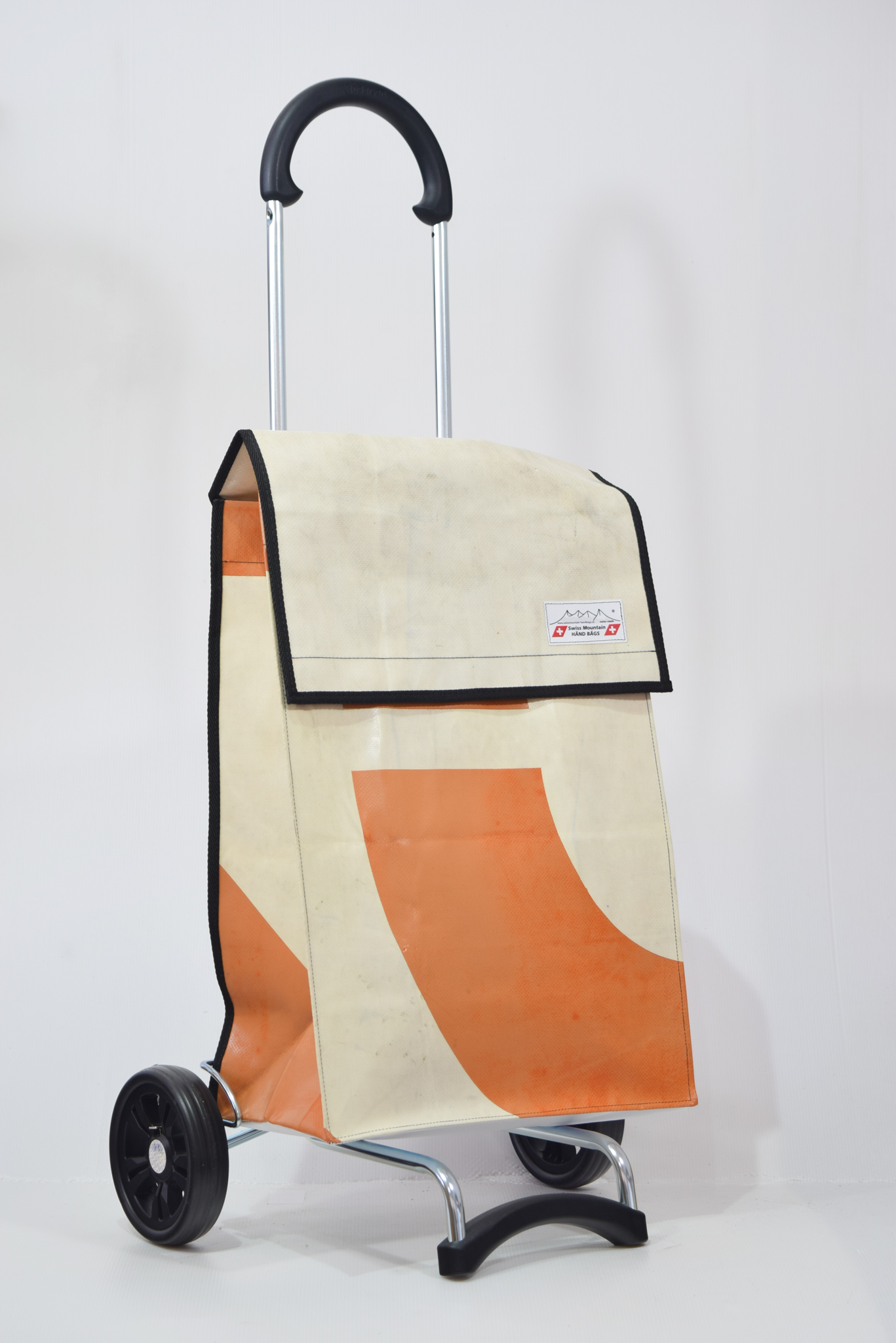 Der Swiss Mountain Einkaufswagen Quadro ist zusammenklappbar. Das Wägelchen-Gestell ist auch ein Markenprodukt der Swiss Mountain . Die 2 Räder haben einen Durchmesser von ca. 18 cm und haben einen konfortablen Rollenlauf.Der Shopperwagengriff ist in 3 Stufen verstellbar in Teleskop-Version. Die getestete Tragfähigkeit ist 40 Kg. An der einen Seite des Einkaufs-Bags befindet sich ein Regenschirmhalter, in den jeder Damen oder Herrenschirm passt. Dieser ist unten offen, so, dass jegliches Regenwasser unten bequem auslaufen kann. Im Innern des Shopper-Bags befindet sich ausserdem noch ein Innenfach ( ca. 17 cm x 21 cm ), das durch einen Reissverschluss zu öffnen oder zu schliessen ist.