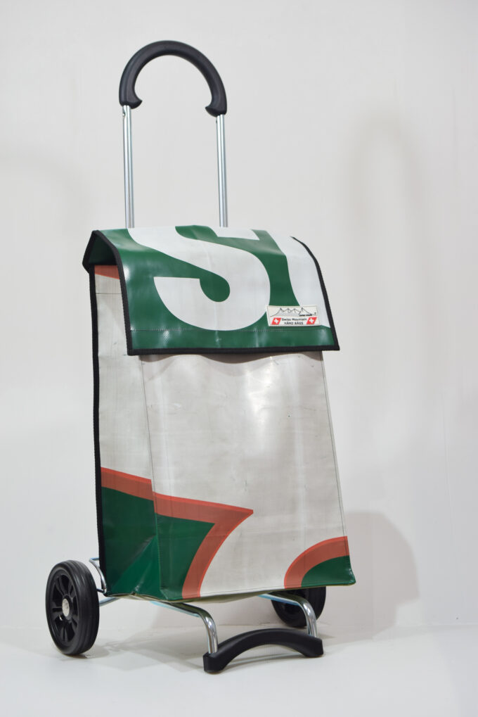 Der Swiss Mountain Einkaufswagen Quadro ist zusammenklappbar. Das Wägelchen-Gestell ist auch ein Markenprodukt der Swiss Mountain . Die 2 Räder haben einen Durchmesser von ca. 18 cm und haben einen konfortablen Rollenlauf.Der Shopperwagengriff ist in 3 Stufen verstellbar in Teleskop-Version. Die getestete Tragfähigkeit ist 40 Kg. An der einen Seite des Einkaufs-Bags befindet sich ein Regenschirmhalter, in den jeder Damen oder Herrenschirm passt. Dieser ist unten offen, so, dass jegliches Regenwasser unten bequem auslaufen kann. Im Innern des Shopper-Bags befindet sich ausserdem noch ein Innenfach ( ca. 17 cm x 21 cm ), das durch einen Reissverschluss zu öffnen oder zu schliessen ist.