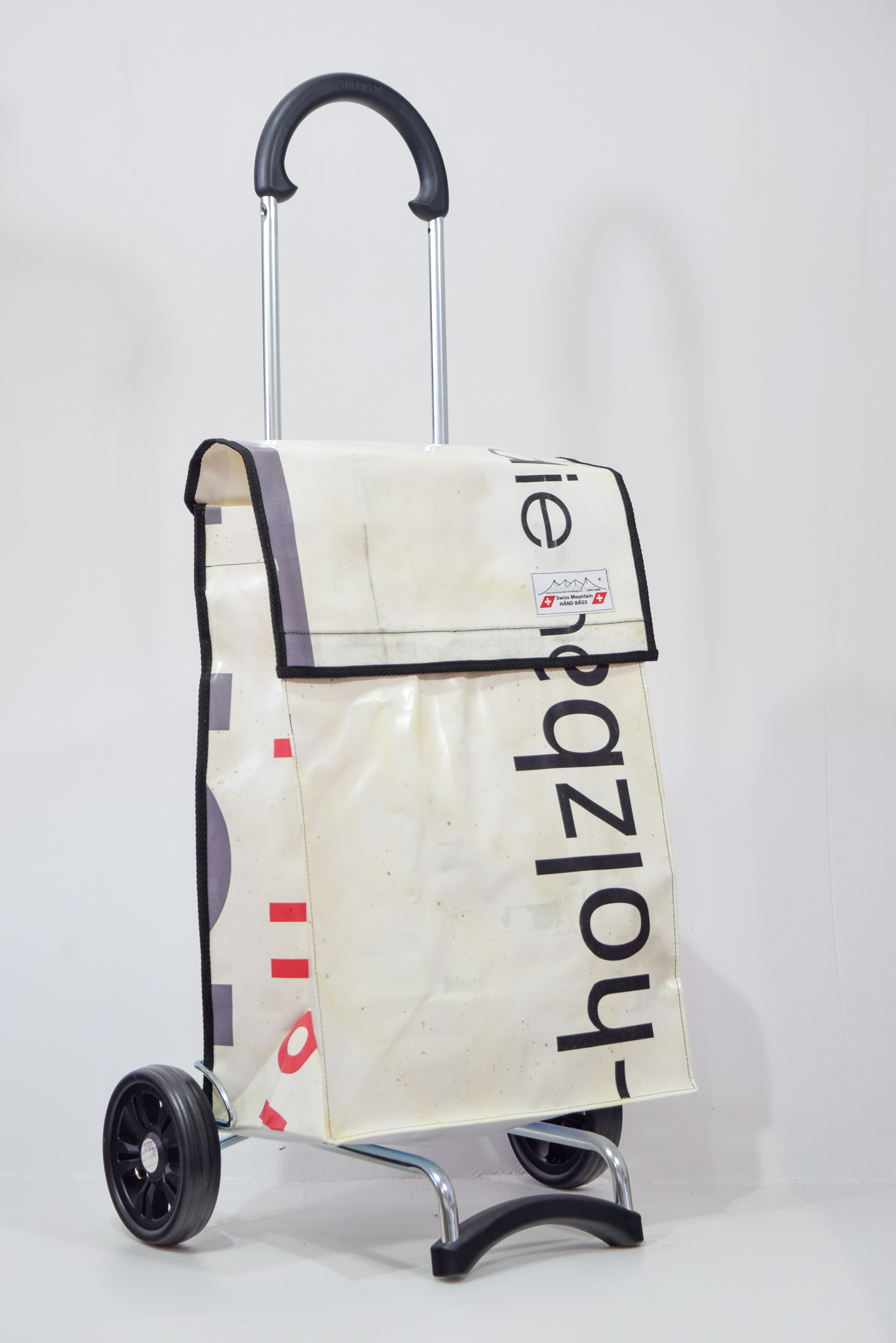 Der Swiss Mountain Einkaufswagen Quadro ist zusammenklappbar. Das Wägelchen-Gestell ist auch ein Markenprodukt der Swiss Mountain . Die 2 Räder haben einen Durchmesser von ca. 18 cm und haben einen konfortablen Rollenlauf.Der Shopperwagengriff ist in 3 Stufen verstellbar in Teleskop-Version. Die getestete Tragfähigkeit ist 40 Kg. An der einen Seite des Einkaufs-Bags befindet sich ein Regenschirmhalter, in den jeder Damen oder Herrenschirm passt. Dieser ist unten offen, so, dass jegliches Regenwasser unten bequem auslaufen kann. Im Innern des Shopper-Bags befindet sich ausserdem noch ein Innenfach ( ca. 17 cm x 21 cm ), das durch einen Reissverschluss zu öffnen oder zu schliessen ist.