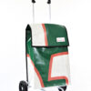 Der Swiss Mountain Einkaufswagen Quadro ist zusammenklappbar. Das Wägelchen-Gestell ist auch ein Markenprodukt der Swiss Mountain . Die 2 Räder haben einen Durchmesser von ca. 18 cm und haben einen konfortablen Rollenlauf.Der Shopperwagengriff ist in 3 Stufen verstellbar in Teleskop-Version. Die getestete Tragfähigkeit ist 40 Kg. An der einen Seite des Einkaufs-Bags befindet sich ein Regenschirmhalter, in den jeder Damen oder Herrenschirm passt. Dieser ist unten offen, so, dass jegliches Regenwasser unten bequem auslaufen kann. Im Innern des Shopper-Bags befindet sich ausserdem noch ein Innenfach ( ca. 17 cm x 21 cm ), das durch einen Reissverschluss zu öffnen oder zu schliessen ist.