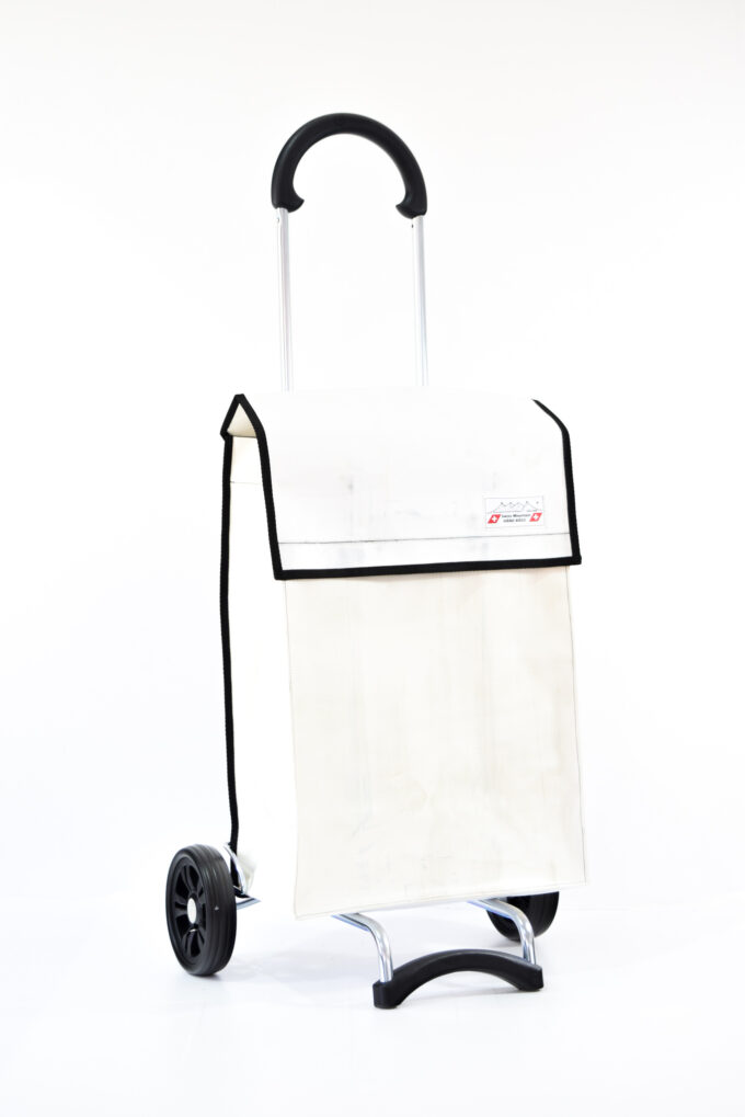Der Swiss Mountain Einkaufswagen Quadro ist zusammenklappbar. Das Wägelchen-Gestell ist auch ein Markenprodukt der Swiss Mountain . Die 2 Räder haben einen Durchmesser von ca. 18 cm und haben einen konfortablen Rollenlauf.Der Shopperwagengriff ist in 3 Stufen verstellbar in Teleskop-Version. Die getestete Tragfähigkeit ist 40 Kg. An der einen Seite des Einkaufs-Bags befindet sich ein Regenschirmhalter, in den jeder Damen oder Herrenschirm passt. Dieser ist unten offen, so, dass jegliches Regenwasser unten bequem auslaufen kann. Im Innern des Shopper-Bags befindet sich ausserdem noch ein Innenfach ( ca. 17 cm x 21 cm ), das durch einen Reissverschluss zu öffnen oder zu schliessen ist.