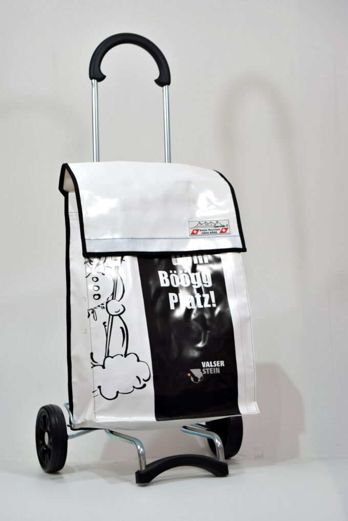 Der Swiss Mountain Einkaufswagen Quadro ist zusammenklappbar. Das Wägelchen-Gestell ist auch ein Markenprodukt der Swiss Mountain . Die 2 Räder haben einen Durchmesser von ca. 18 cm und haben einen konfortablen Rollenlauf.Der Shopperwagengriff ist in 3 Stufen verstellbar in Teleskop-Version. Die getestete Tragfähigkeit ist 40 Kg. An der einen Seite des Einkaufs-Bags befindet sich ein Regenschirmhalter, in den jeder Damen oder Herrenschirm passt. Dieser ist unten offen, so, dass jegliches Regenwasser unten bequem auslaufen kann. Im Innern des Shopper-Bags befindet sich ausserdem noch ein Innenfach ( ca. 17 cm x 21 cm ), das durch einen Reissverschluss zu öffnen oder zu schliessen ist.
