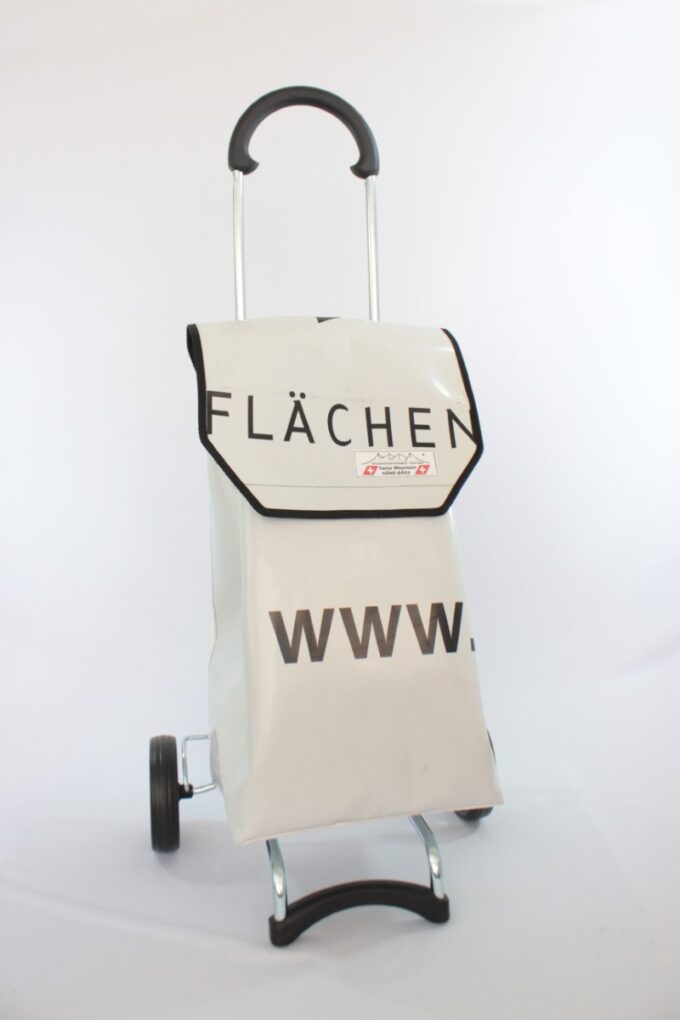 Durch aufreissen von 2 Klettbandverschlüssen kann man den Shopper-Bag vom Wägelchen abnehmen und diesen Shopper-Bag als Rucksack verwenden, da an der Rückseite des Shopper-Bags zwei 4 cm Breite und in der Länge verstellbare Tragegurten angebracht sind.