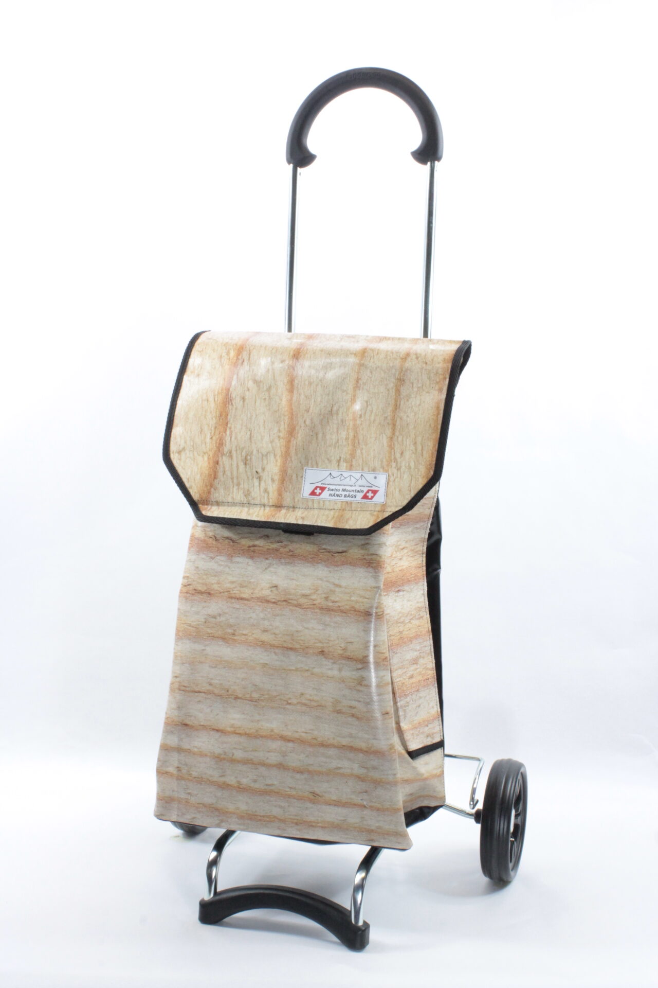 Der Swiss Mountain Einkaufswagen ist am Griff umklappbar. Das Wägelchen-Gestell ist auch ein Markenprodukt der Anderson . Die 2 Räder haben einen Durchmesser von ca. 16 cm und haben einen konfortablen Rollenlauf. Die getestete Tragfähigkeit ist 40 Kg. An der einen Seite des Einkaufs-Bags befindet sich ein Regenschirmhalter, in den jeder Damen oder Herrenschirm passt. Dieser ist unten offen, so, dass jegliches Regenwasser unten bequem auslaufen kann. Im Innern des Shopper-Bags befindet sich ausserdem noch ein Innenfach ( ca. 17 cm x 21 cm ), das durch einen Reissverschluss zu öffnen oder zu schliessen ist.