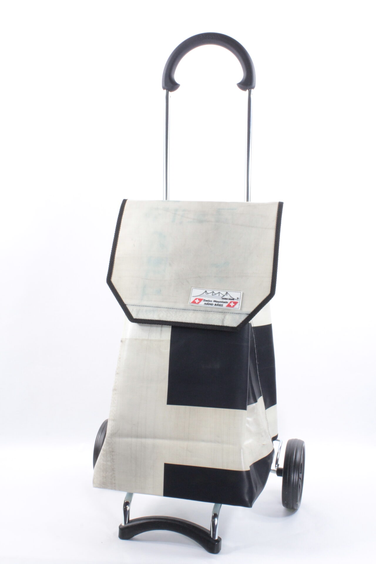 Der Swiss Mountain Einkaufswagen ist am Griff umklappbar. Das Wägelchen-Gestell ist auch ein Markenprodukt der Anderson . Die 2 Räder haben einen Durchmesser von ca. 16 cm und haben einen konfortablen Rollenlauf. Die getestete Tragfähigkeit ist 40 Kg. An der einen Seite des Einkaufs-Bags befindet sich ein Regenschirmhalter, in den jeder Damen oder Herrenschirm passt. Dieser ist unten offen, so, dass jegliches Regenwasser unten bequem auslaufen kann. Im Innern des Shopper-Bags befindet sich ausserdem noch ein Innenfach ( ca. 17 cm x 21 cm ), das durch einen Reissverschluss zu öffnen oder zu schliessen ist.