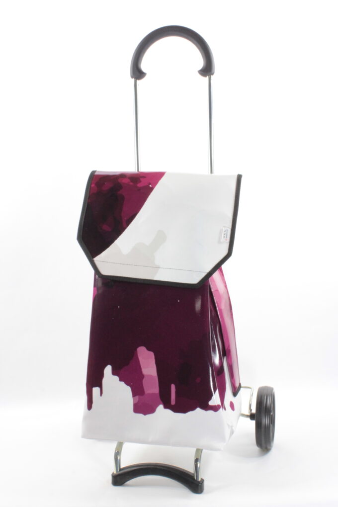 Durch aufreissen von 2 Klettbandverschlüssen kann man den Shopper-Bag vom Wägelchen abnehmen und diesen Shopper-Bag als Rucksack verwenden, da an der Rückseite des Shopper-Bags zwei 4 cm Breite und in der Länge verstellbare Tragegurten angebracht sind.