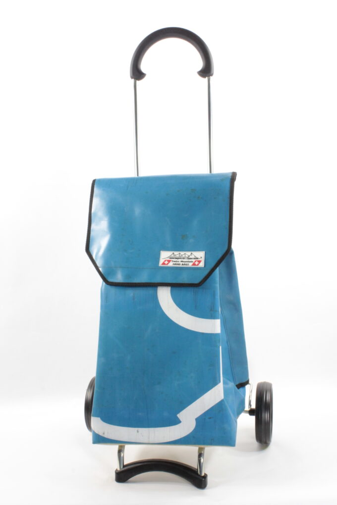 Durch aufreissen von 2 Klettbandverschlüssen kann man den Shopper-Bag vom Wägelchen abnehmen und diesen Shopper-Bag als Rucksack verwenden, da an der Rückseite des Shopper-Bags zwei 4 cm Breite und in der Länge verstellbare Tragegurten angebracht sind.