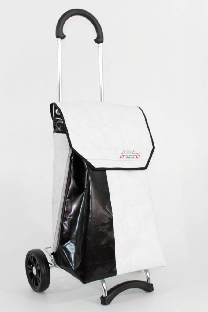 Der Swiss Mountain Einkaufswagen ist am Griff umklappbar. Das Wägelchen-Gestell ist auch ein Markenprodukt der Anderson . Die 2 Räder haben einen Durchmesser von ca. 16 cm und haben einen konfortablen Rollenlauf. Die getestete Tragfähigkeit ist 40 Kg. An der einen Seite des Einkaufs-Bags befindet sich ein Regenschirmhalter, in den jeder Damen oder Herrenschirm passt. Dieser ist unten offen, so, dass jegliches Regenwasser unten bequem auslaufen kann. Im Innern des Shopper-Bags befindet sich ausserdem noch ein Innenfach ( ca. 17 cm x 21 cm ), das durch einen Reissverschluss zu öffnen oder zu schliessen ist.