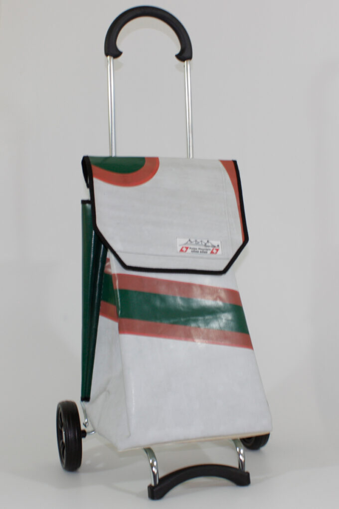 Durch aufreissen von 2 Klettbandverschlüssen kann man den Shopper-Bag vom Wägelchen abnehmen und diesen Shopper-Bag als Rucksack verwenden, da an der Rückseite des Shopper-Bags zwei 4 cm Breite und in der Länge verstellbare Tragegurten angebracht sind.