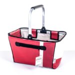 Der gesamte Shopper-Bag ist mit einem Falldeckel zu schliessen ( ca. 33 cm x 33 cm ) Der Deckel sowie der Regenschirmhalter sind mit Laminierband abgesteppt und somit unverwüstlich!