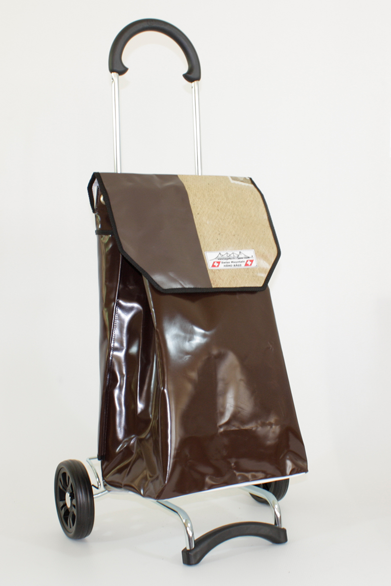 Der Swiss Mountain Einkaufswagen ist am Griff umklappbar. Das Wägelchen-Gestell ist auch ein Markenprodukt der Anderson . Die 2 Räder haben einen Durchmesser von ca. 16 cm und haben einen konfortablen Rollenlauf. Die getestete Tragfähigkeit ist 40 Kg. An der einen Seite des Einkaufs-Bags befindet sich ein Regenschirmhalter, in den jeder Damen oder Herrenschirm passt. Dieser ist unten offen, so, dass jegliches Regenwasser unten bequem auslaufen kann. Im Innern des Shopper-Bags befindet sich ausserdem noch ein Innenfach ( ca. 17 cm x 21 cm ), das durch einen Reissverschluss zu öffnen oder zu schliessen ist.