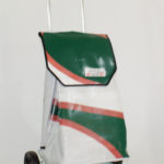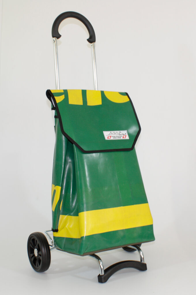 Durch aufreissen von 2 Klettbandverschlüssen kann man den Shopper-Bag vom Wägelchen abnehmen und diesen Shopper-Bag als Rucksack verwenden, da an der Rückseite des Shopper-Bags zwei 4 cm Breite und in der Länge verstellbare Tragegurten angebracht sind.