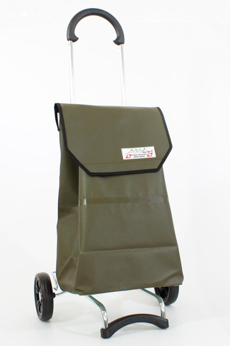 Der Swiss Mountain Einkaufswagen ist am Griff umklappbar. Das Wägelchen-Gestell ist auch ein Markenprodukt der Anderson . Die 2 Räder haben einen Durchmesser von ca. 16 cm und haben einen konfortablen Rollenlauf. Die getestete Tragfähigkeit ist 40 Kg. An der einen Seite des Einkaufs-Bags befindet sich ein Regenschirmhalter, in den jeder Damen oder Herrenschirm passt. Dieser ist unten offen, so, dass jegliches Regenwasser unten bequem auslaufen kann. Im Innern des Shopper-Bags befindet sich ausserdem noch ein Innenfach ( ca. 17 cm x 21 cm ), das durch einen Reissverschluss zu öffnen oder zu schliessen ist.