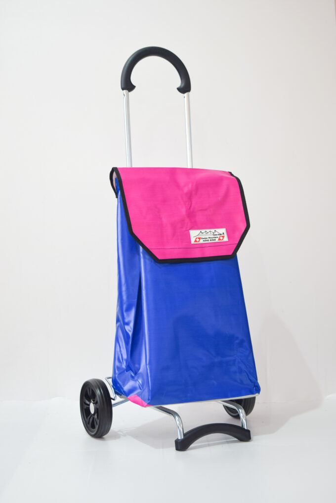 Der Swiss Mountain Einkaufswagen ist am Griff umklappbar. Das Wägelchen-Gestell ist auch ein Markenprodukt der Anderson . Die 2 Räder haben einen Durchmesser von ca. 16 cm und haben einen konfortablen Rollenlauf. Die getestete Tragfähigkeit ist 40 Kg. An der einen Seite des Einkaufs-Bags befindet sich ein Regenschirmhalter, in den jeder Damen oder Herrenschirm passt. Dieser ist unten offen, so, dass jegliches Regenwasser unten bequem auslaufen kann. Im Innern des Shopper-Bags befindet sich ausserdem noch ein Innenfach ( ca. 17 cm x 21 cm ), das durch einen Reissverschluss zu öffnen oder zu schliessen ist.
