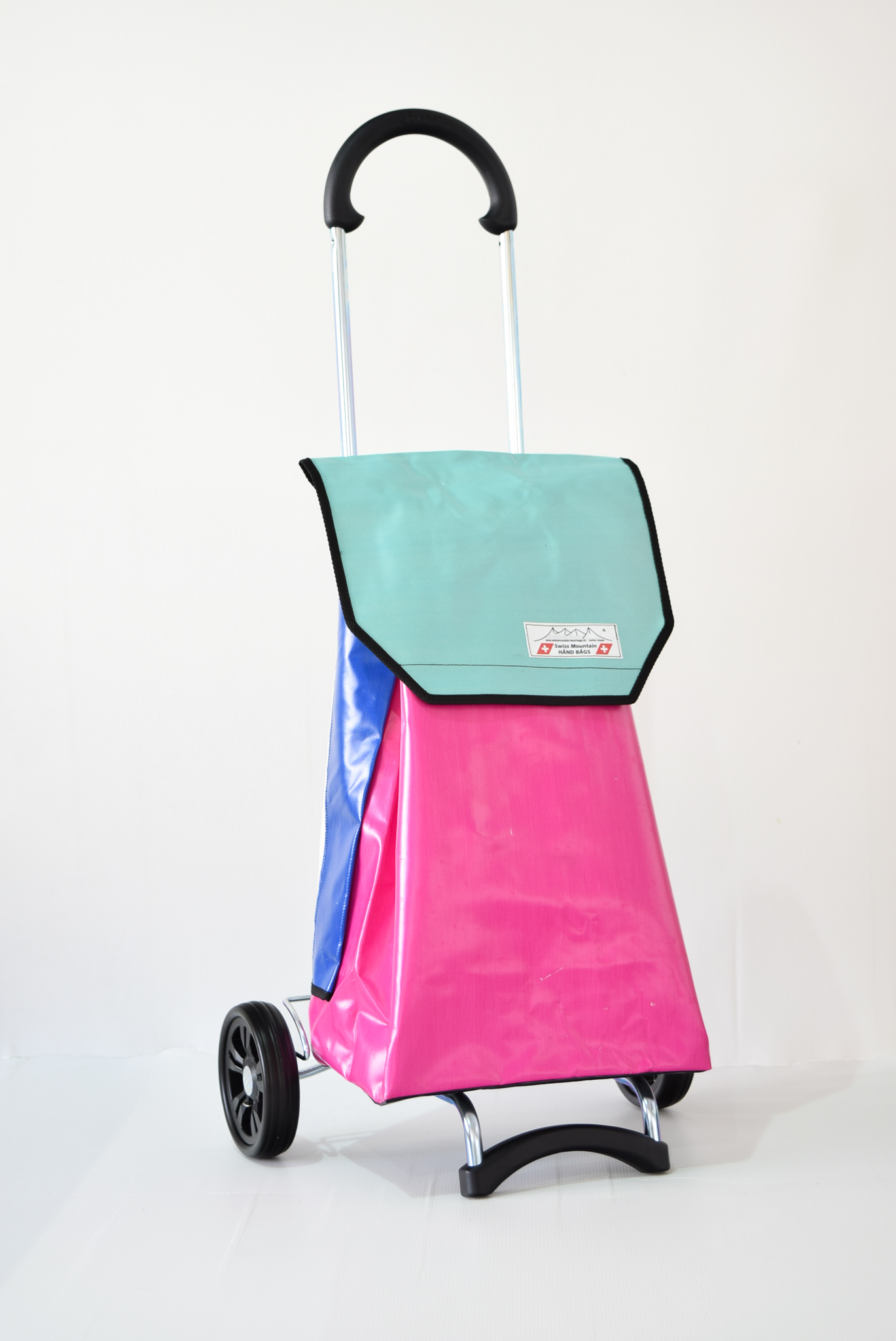 Der Swiss Mountain Einkaufswagen ist am Griff umklappbar. Das Wägelchen-Gestell ist auch ein Markenprodukt der Anderson . Die 2 Räder haben einen Durchmesser von ca. 16 cm und haben einen konfortablen Rollenlauf. Die getestete Tragfähigkeit ist 40 Kg. An der einen Seite des Einkaufs-Bags befindet sich ein Regenschirmhalter, in den jeder Damen oder Herrenschirm passt. Dieser ist unten offen, so, dass jegliches Regenwasser unten bequem auslaufen kann. Im Innern des Shopper-Bags befindet sich ausserdem noch ein Innenfach ( ca. 17 cm x 21 cm ), das durch einen Reissverschluss zu öffnen oder zu schliessen ist.