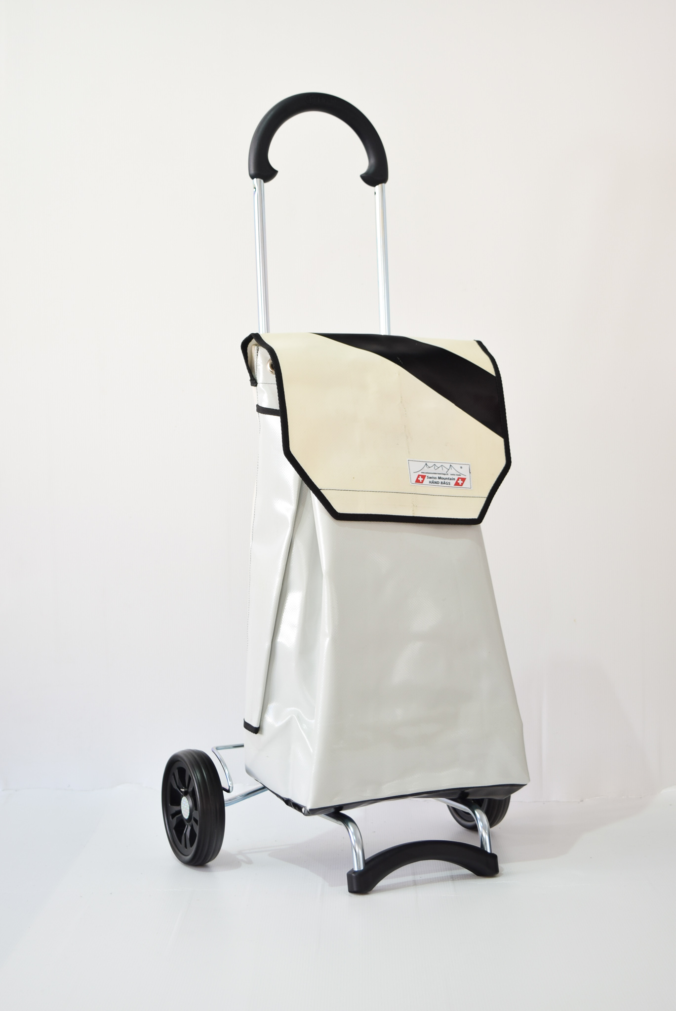 Der Swiss Mountain Einkaufswagen ist am Griff umklappbar. Das Wägelchen-Gestell ist auch ein Markenprodukt der Anderson . Die 2 Räder haben einen Durchmesser von ca. 16 cm und haben einen konfortablen Rollenlauf. Die getestete Tragfähigkeit ist 40 Kg. An der einen Seite des Einkaufs-Bags befindet sich ein Regenschirmhalter, in den jeder Damen oder Herrenschirm passt. Dieser ist unten offen, so, dass jegliches Regenwasser unten bequem auslaufen kann. Im Innern des Shopper-Bags befindet sich ausserdem noch ein Innenfach ( ca. 17 cm x 21 cm ), das durch einen Reissverschluss zu öffnen oder zu schliessen ist.