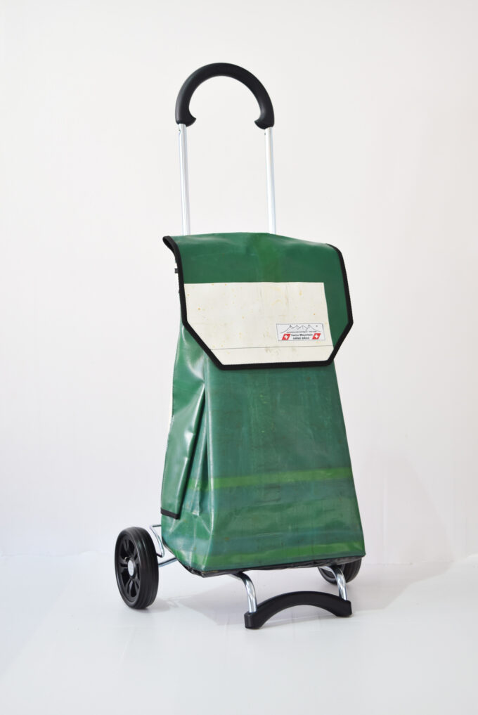 Durch aufreissen von 2 Klettbandverschlüssen kann man den Shopper-Bag vom Wägelchen abnehmen und diesen Shopper-Bag als Rucksack verwenden, da an der Rückseite des Shopper-Bags zwei 4 cm Breite und in der Länge verstellbare Tragegurten angebracht sind.