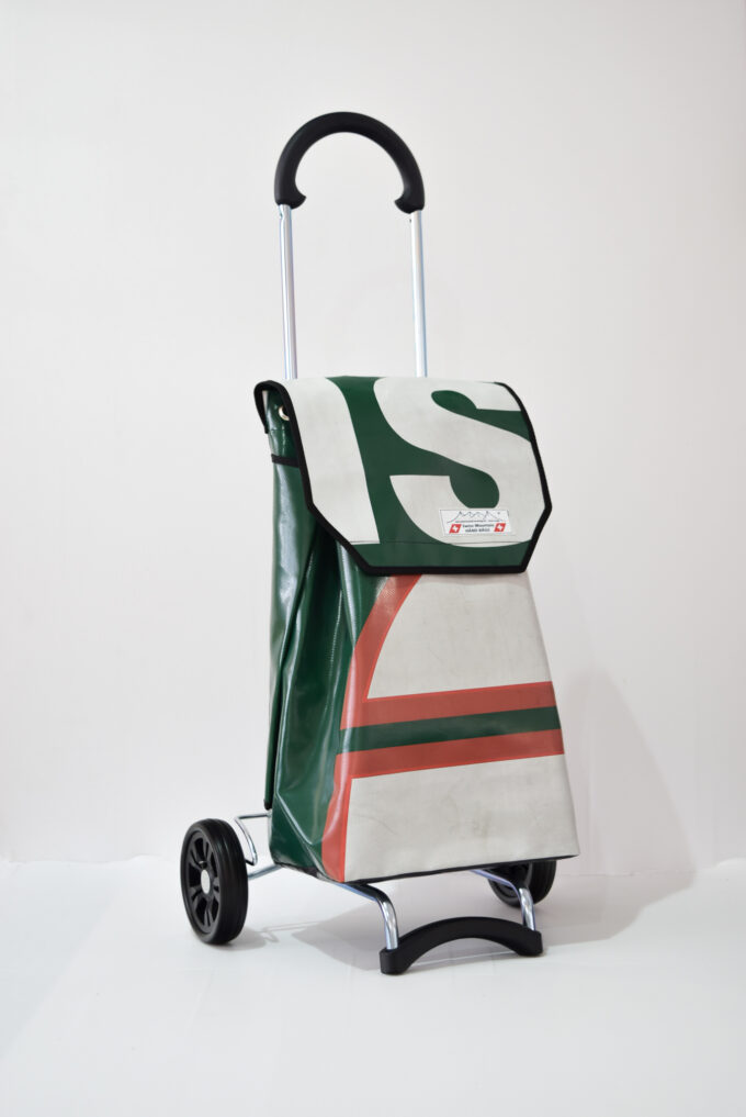 Durch aufreissen von 2 Klettbandverschlüssen kann man den Shopper-Bag vom Wägelchen abnehmen und diesen Shopper-Bag als Rucksack verwenden, da an der Rückseite des Shopper-Bags zwei 4 cm Breite und in der Länge verstellbare Tragegurten angebracht sind.