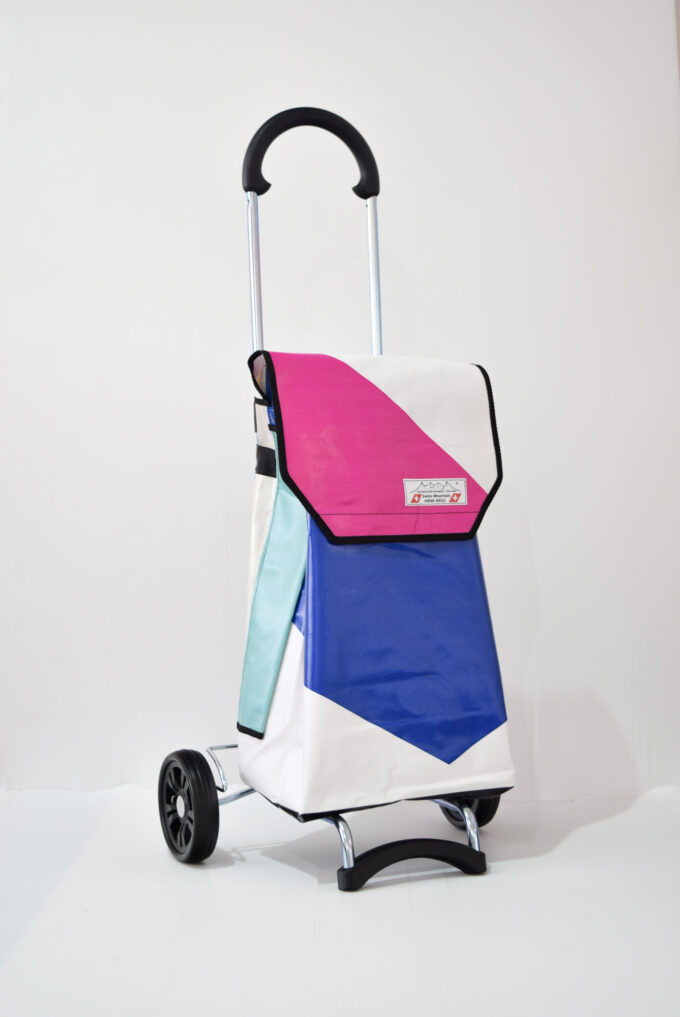 Durch aufreissen von 2 Klettbandverschlüssen kann man den Shopper-Bag vom Wägelchen abnehmen und diesen Shopper-Bag als Rucksack verwenden, da an der Rückseite des Shopper-Bags zwei 4 cm Breite und in der Länge verstellbare Tragegurten angebracht sind.