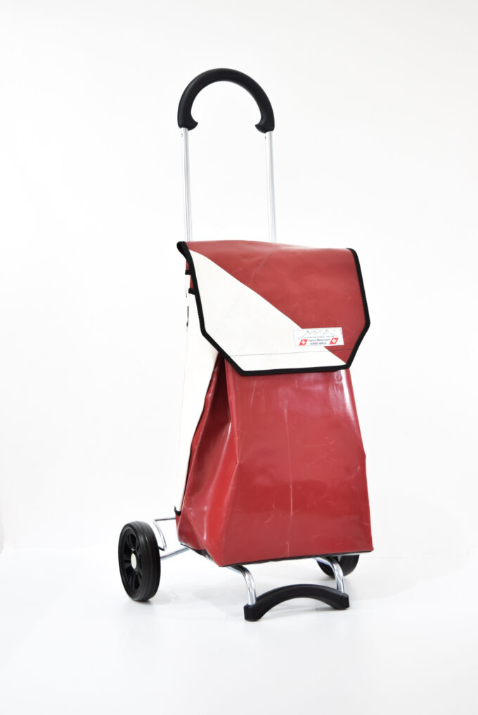 Durch aufreissen von 2 Klettbandverschlüssen kann man den Shopper-Bag vom Wägelchen abnehmen und diesen Shopper-Bag als Rucksack verwenden, da an der Rückseite des Shopper-Bags zwei 4 cm Breite und in der Länge verstellbare Tragegurten angebracht sind.