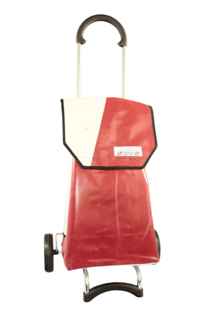 Durch aufreissen von 2 Klettbandverschlüssen kann man den Shopper-Bag vom Wägelchen abnehmen und diesen Shopper-Bag als Rucksack verwenden, da an der Rückseite des Shopper-Bags zwei 4 cm Breite und in der Länge verstellbare Tragegurten angebracht sind.