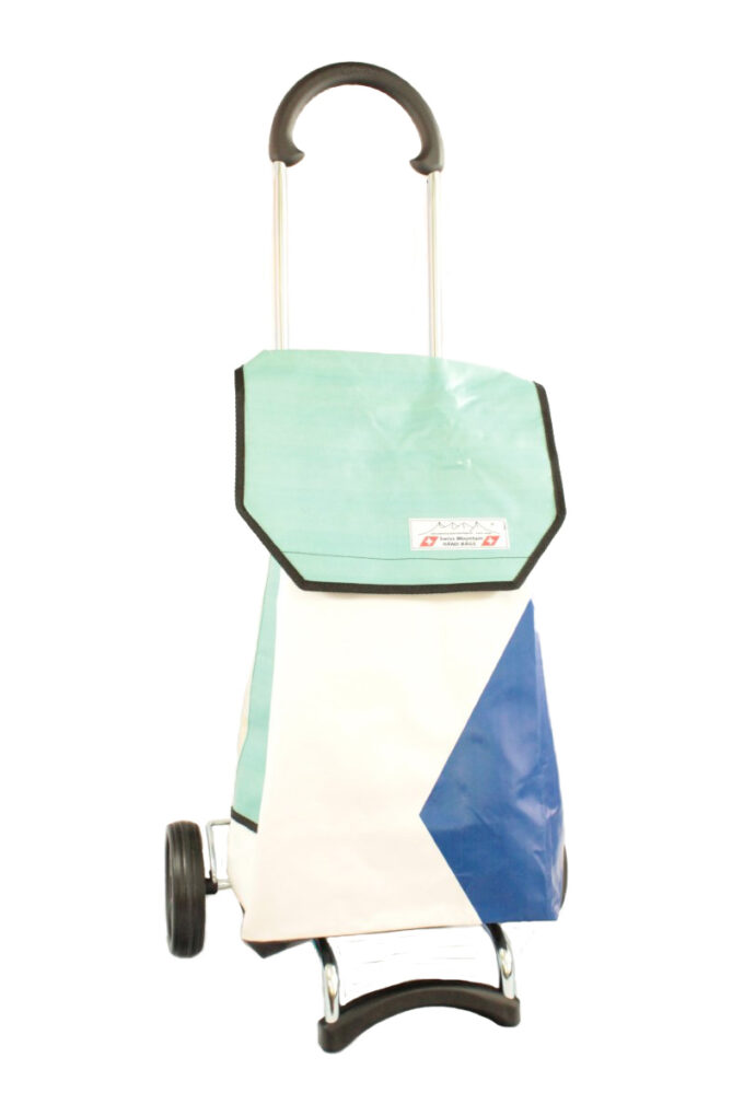 Der Swiss Mountain Einkaufswagen ist am Griff umklappbar. Das Wägelchen-Gestell ist auch ein Markenprodukt der Anderson . Die 2 Räder haben einen Durchmesser von ca. 16 cm und haben einen konfortablen Rollenlauf. Die getestete Tragfähigkeit ist 40 Kg. An der einen Seite des Einkaufs-Bags befindet sich ein Regenschirmhalter, in den jeder Damen oder Herrenschirm passt. Dieser ist unten offen, so, dass jegliches Regenwasser unten bequem auslaufen kann. Im Innern des Shopper-Bags befindet sich ausserdem noch ein Innenfach ( ca. 17 cm x 21 cm ), das durch einen Reissverschluss zu öffnen oder zu schliessen ist.