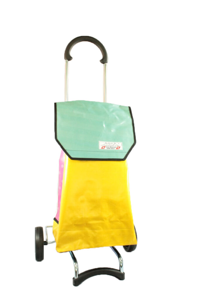 Der Swiss Mountain Einkaufswagen ist am Griff umklappbar. Das Wägelchen-Gestell ist auch ein Markenprodukt der Anderson . Die 2 Räder haben einen Durchmesser von ca. 16 cm und haben einen konfortablen Rollenlauf. Die getestete Tragfähigkeit ist 40 Kg. An der einen Seite des Einkaufs-Bags befindet sich ein Regenschirmhalter, in den jeder Damen oder Herrenschirm passt. Dieser ist unten offen, so, dass jegliches Regenwasser unten bequem auslaufen kann. Im Innern des Shopper-Bags befindet sich ausserdem noch ein Innenfach ( ca. 17 cm x 21 cm ), das durch einen Reissverschluss zu öffnen oder zu schliessen ist.