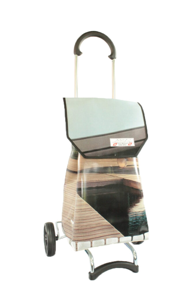 Der Swiss Mountain Einkaufswagen ist am Griff umklappbar. Das Wägelchen-Gestell ist auch ein Markenprodukt der Anderson . Die 2 Räder haben einen Durchmesser von ca. 16 cm und haben einen konfortablen Rollenlauf. Die getestete Tragfähigkeit ist 40 Kg. An der einen Seite des Einkaufs-Bags befindet sich ein Regenschirmhalter, in den jeder Damen oder Herrenschirm passt. Dieser ist unten offen, so, dass jegliches Regenwasser unten bequem auslaufen kann. Im Innern des Shopper-Bags befindet sich ausserdem noch ein Innenfach ( ca. 17 cm x 21 cm ), das durch einen Reissverschluss zu öffnen oder zu schliessen ist.
