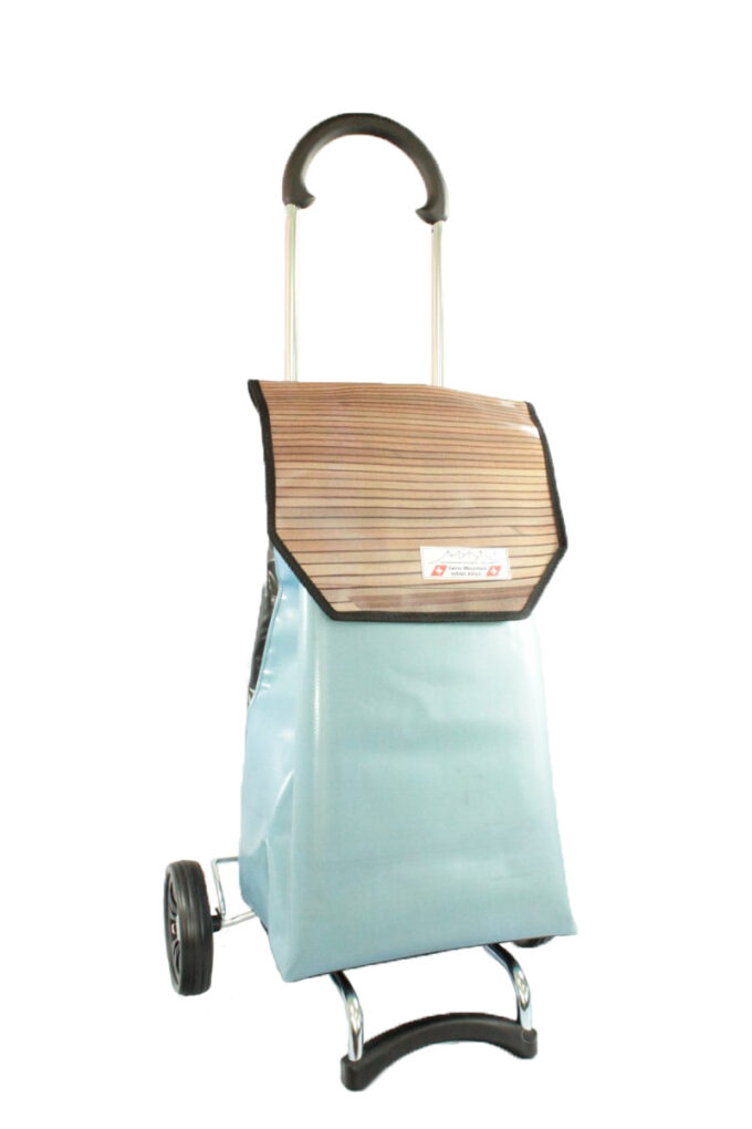 Durch aufreissen von 2 Klettbandverschlüssen kann man den Shopper-Bag vom Wägelchen abnehmen und diesen Shopper-Bag als Rucksack verwenden, da an der Rückseite des Shopper-Bags zwei 4 cm Breite und in der Länge verstellbare Tragegurten angebracht sind.