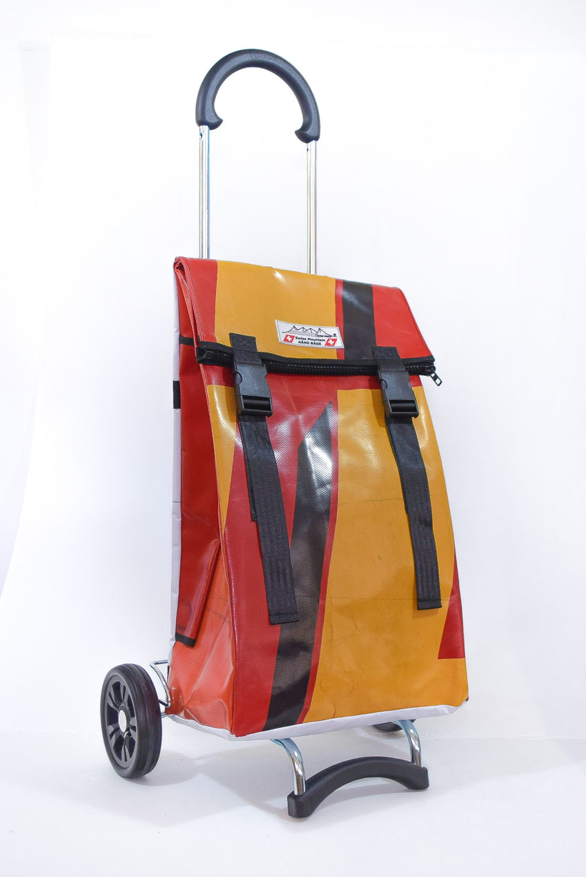 Der Swiss Mountain Einkaufswagen ist am Griff umklappbar. Das Wägelchen-Gestell ist auch ein Markenprodukt der Anderson. Die 2 Räder haben einen Durchmesser von ca. 16 cm und haben einen konfortablen Rollenlauf. Die getestete Tragfähigkeit ist 40 Kg. An der einen Seite des Einkaufs-Bags befindet sich ein Regenschirmhalter, in den jeder Damen oder Herrenschirm passt. Dieser ist unten offen, so, dass jegliches Regenwasser unten bequem auslaufen kann. Auf der gegenüberliegenden Seite findet sich ein grosses Flachfach.