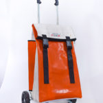 Durch aufreissen von 2 Klettbandverschlüssen kann man den Shopper-Bag vom Wägelchen abnehmen und diesen Shopper-Bag als Rucksack verwenden, da an der Rückseite des Zipper zwei 4 cm Breite und in der Länge verstellbare Tragegurten angebracht sind.