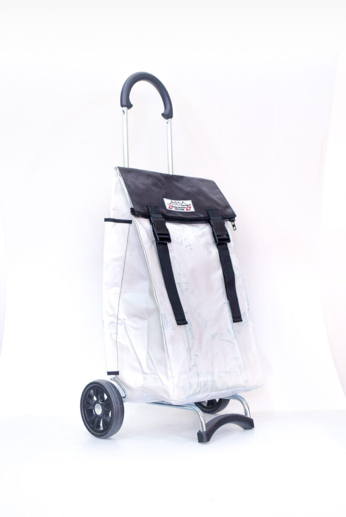 Der Swiss Mountain Einkaufswagen ist am Griff umklappbar. Das Wägelchen-Gestell ist auch ein Markenprodukt der Anderson. Die 2 Räder haben einen Durchmesser von ca. 16 cm und haben einen konfortablen Rollenlauf. Die getestete Tragfähigkeit ist 40 Kg. An der einen Seite des Einkaufs-Bags befindet sich ein Regenschirmhalter, in den jeder Damen oder Herrenschirm passt. Dieser ist unten offen, so, dass jegliches Regenwasser unten bequem auslaufen kann. Auf der gegenüberliegenden Seite findet sich ein grosses Flachfach.