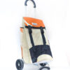 Durch aufreissen von 2 Klettbandverschlüssen kann man den Shopper-Bag vom Wägelchen abnehmen und diesen Shopper-Bag als Rucksack verwenden, da an der Rückseite des Zipper zwei 4 cm Breite und in der Länge verstellbare Tragegurten angebracht sind.