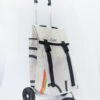 Durch aufreissen von 2 Klettbandverschlüssen kann man den Shopper-Bag vom Wägelchen abnehmen und diesen Shopper-Bag als Rucksack verwenden, da an der Rückseite des Zipper zwei 4 cm Breite und in der Länge verstellbare Tragegurten angebracht sind.