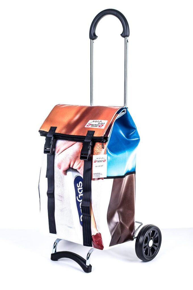 Der Swiss Mountain Einkaufswagen ist am Griff umklappbar. Das Wägelchen-Gestell ist auch ein Markenprodukt der Anderson. Die 2 Räder haben einen Durchmesser von ca. 16 cm und haben einen konfortablen Rollenlauf. Die getestete Tragfähigkeit ist 40 Kg. An der einen Seite des Einkaufs-Bags befindet sich ein Regenschirmhalter, in den jeder Damen oder Herrenschirm passt. Dieser ist unten offen, so, dass jegliches Regenwasser unten bequem auslaufen kann. Auf der gegenüberliegenden Seite findet sich ein grosses Flachfach.