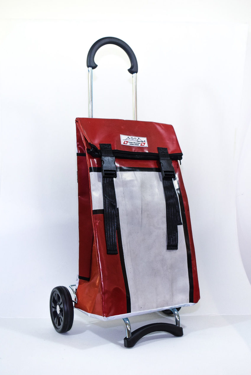 Durch aufreissen von 2 Klettbandverschlüssen kann man den Shopper-Bag vom Wägelchen abnehmen und diesen Shopper-Bag als Rucksack verwenden, da an der Rückseite des Zipper zwei 4 cm Breite und in der Länge verstellbare Tragegurten angebracht sind.
