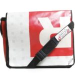 Diese Tasche ist aus gebrauchter LKW Plane und wurde in der Schweiz von Hand hergestellt.