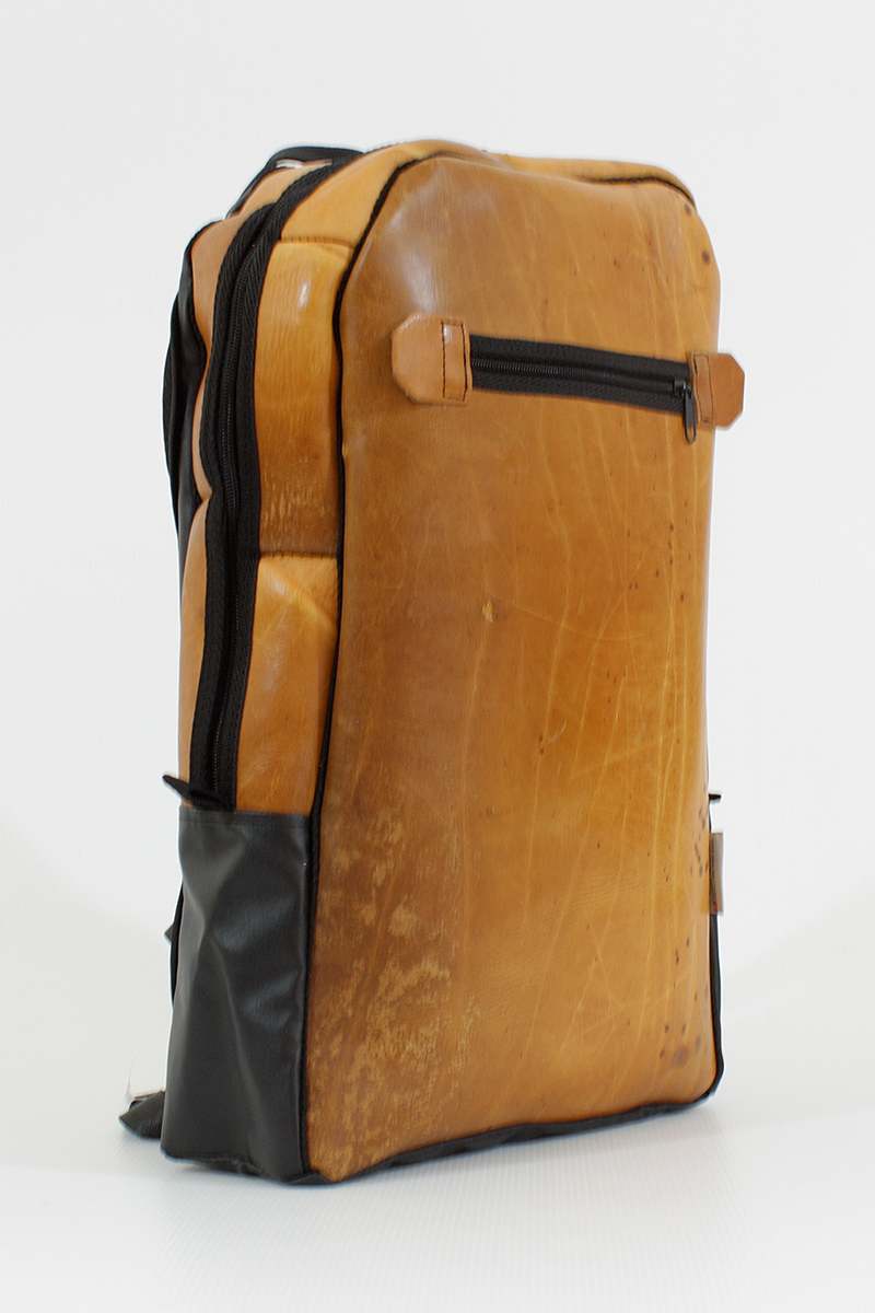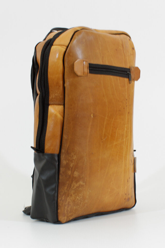 Diese Rucksäcke sind absolute Unikate. Die Front und Oberseite sind aus altem ( min. 40 Jahre alt) Gymnastik-Turngeräte-Leder hergestellt. Jeder Rucksack hat einen anderen Look, das Leder ist unterschiedlich abgegriffen und hatt somit eine unvergleichlich schöne Patina durch die Jahre erhalten.
