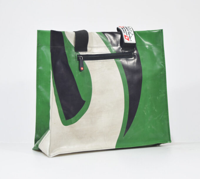 Dieser Shopper ist sehr robust. Das Innenfach ( ca. 19 x 19 cm )ist von aussen durch einen ca. 17 cm langen Reissverschluss erreichbar und abschliessbar. Zu tragen ist der Shopper mit 2 Tragegriffen, die ab Oberkante Shopper ca. 21 cm noch lang sind. Die Tragegurten sind 4 cm breit und sehr stark vernäht. Die Tragegurten sind oben zusammengenäht, dies ergibt einen grössenren Comfort beimen der Griffe.